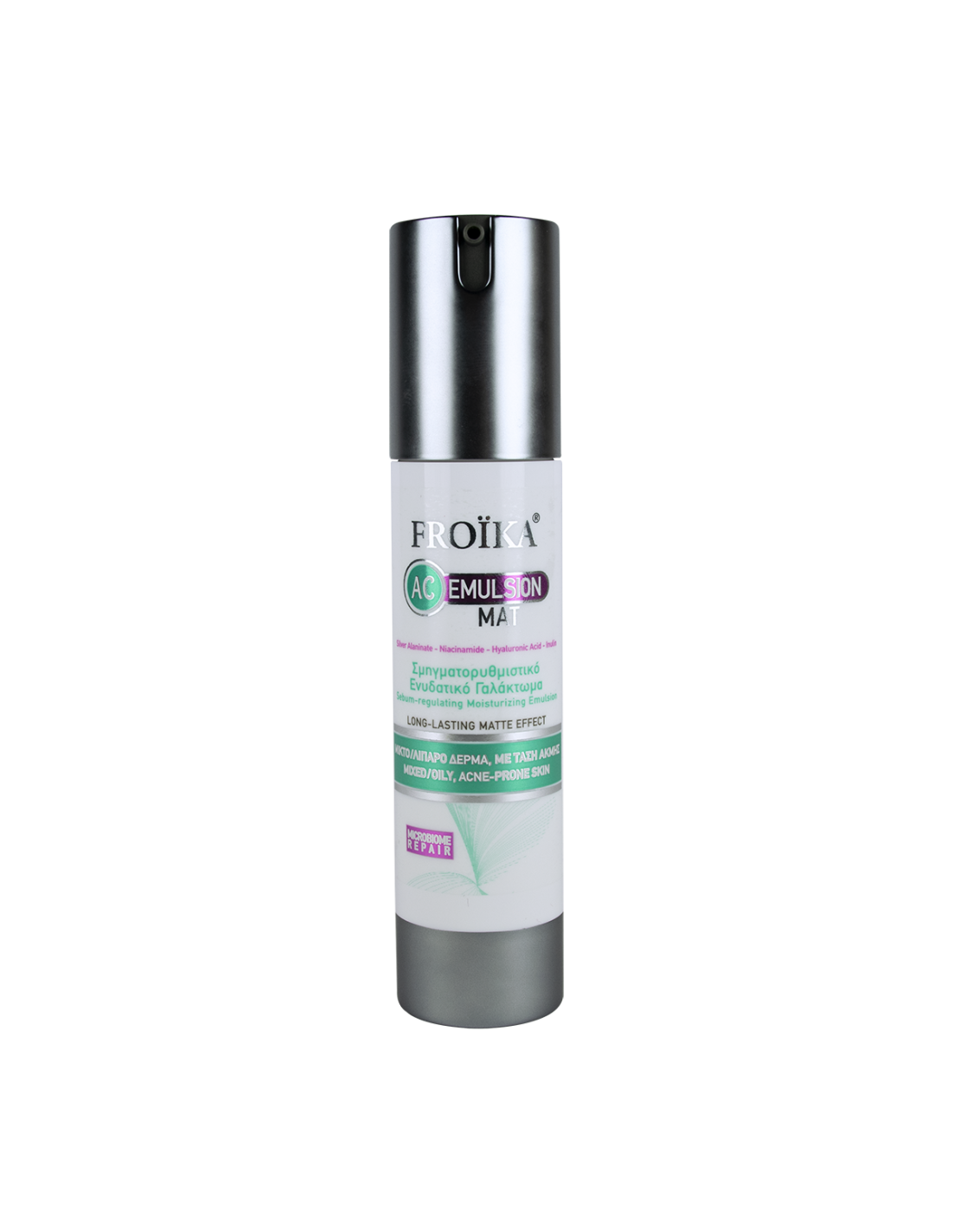 Το σμηγματορυθμιστικό ενυδατικό γαλάκτωμα AC Emulsion Mat της Froika χαρίζει στην επιδερμίδα ματ αποτέλεσμα, εξουδετερώνοντας τη γυαλάδα από την πρώτη εφαρμογή.